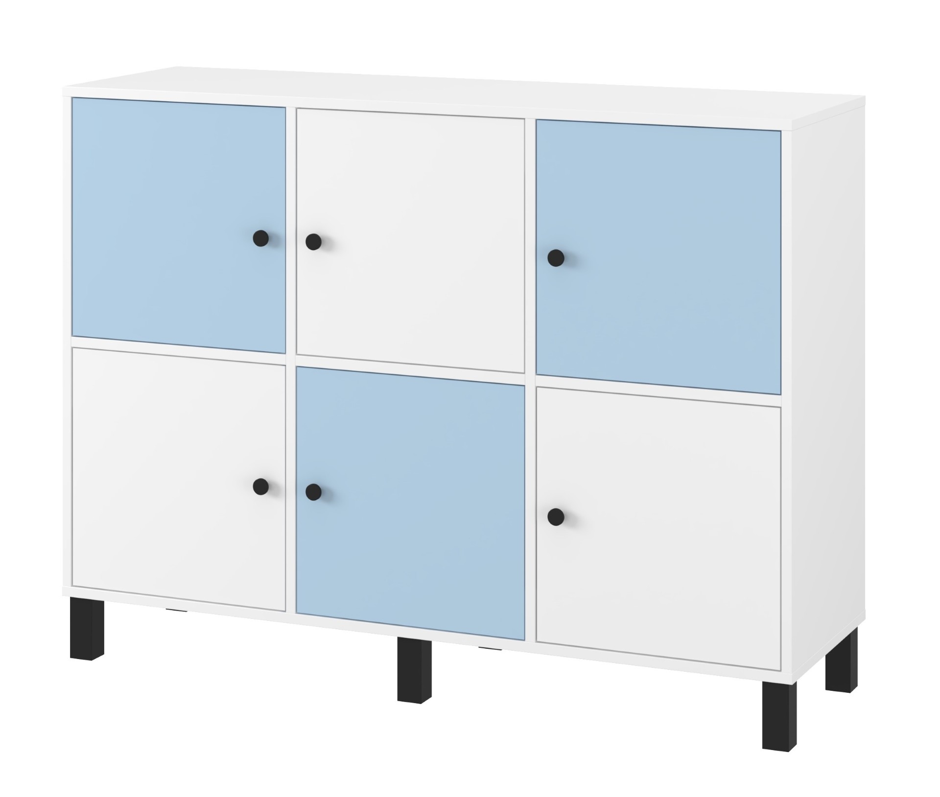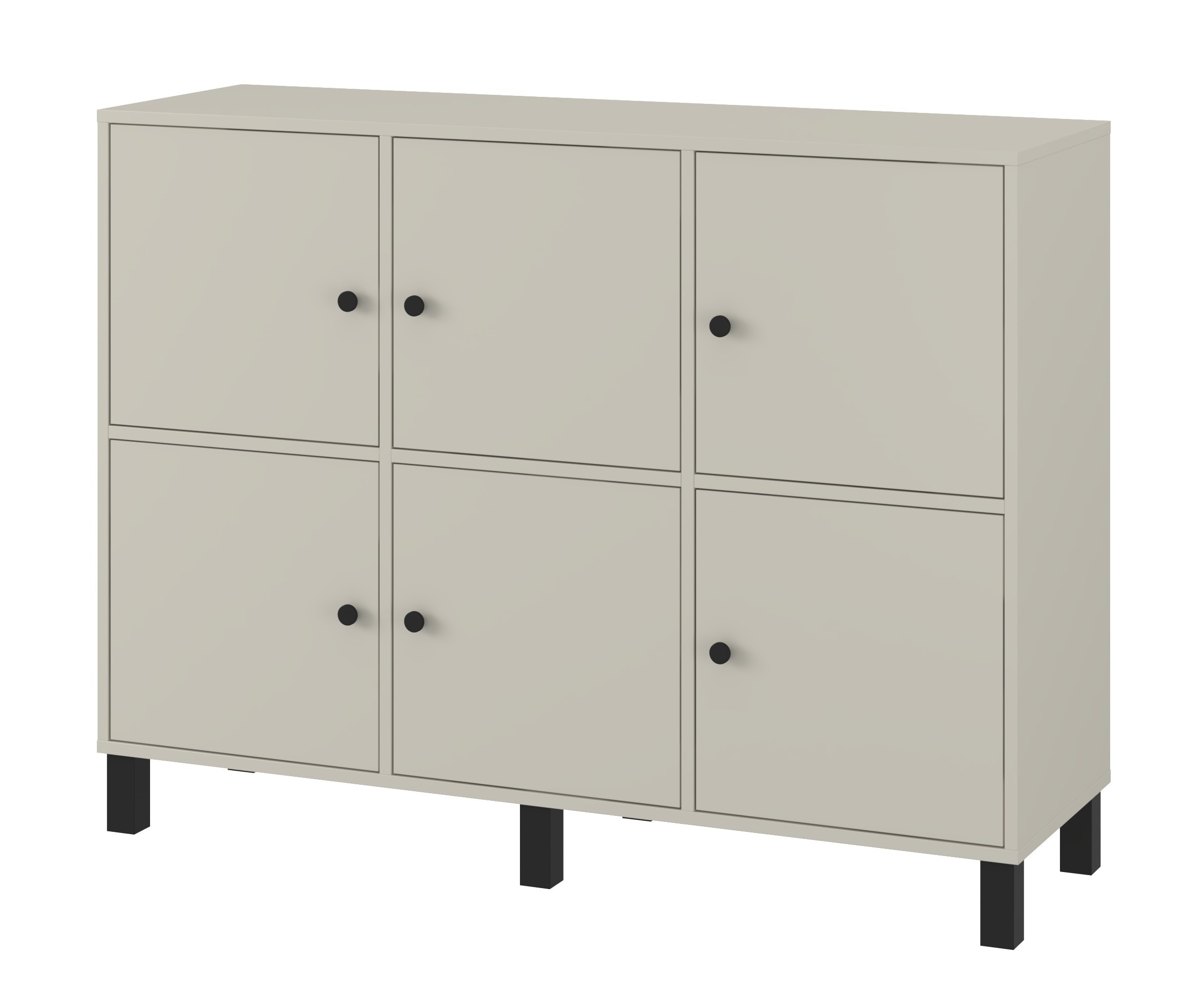 Komoda ima šest zaprtih polic, kar poveča njeno funkcionalnost in prostornino za shranjevanje.