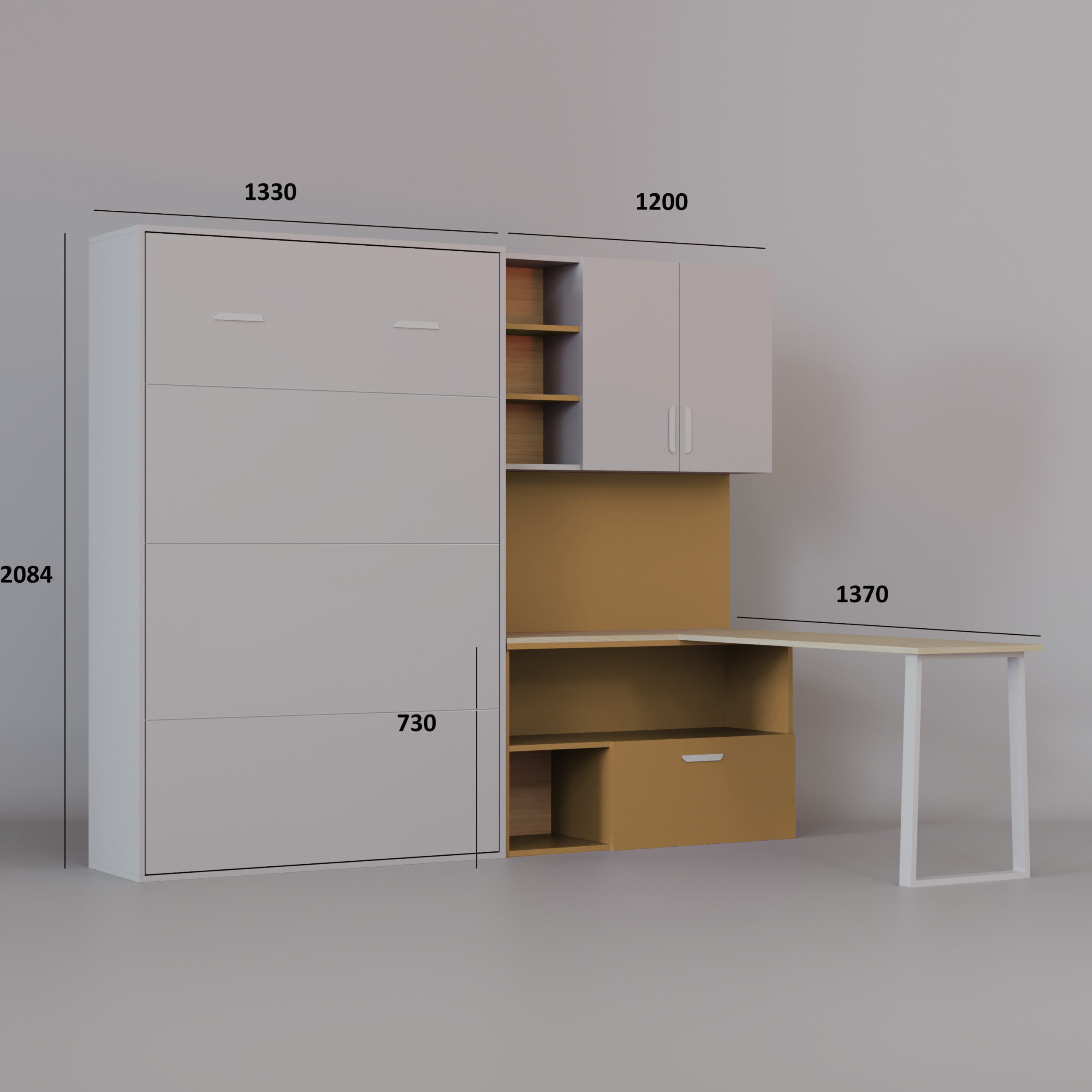 Komplet Flexi Bed Lumi – zložljiva postelja s pisalo mizo, kašmir in rumena