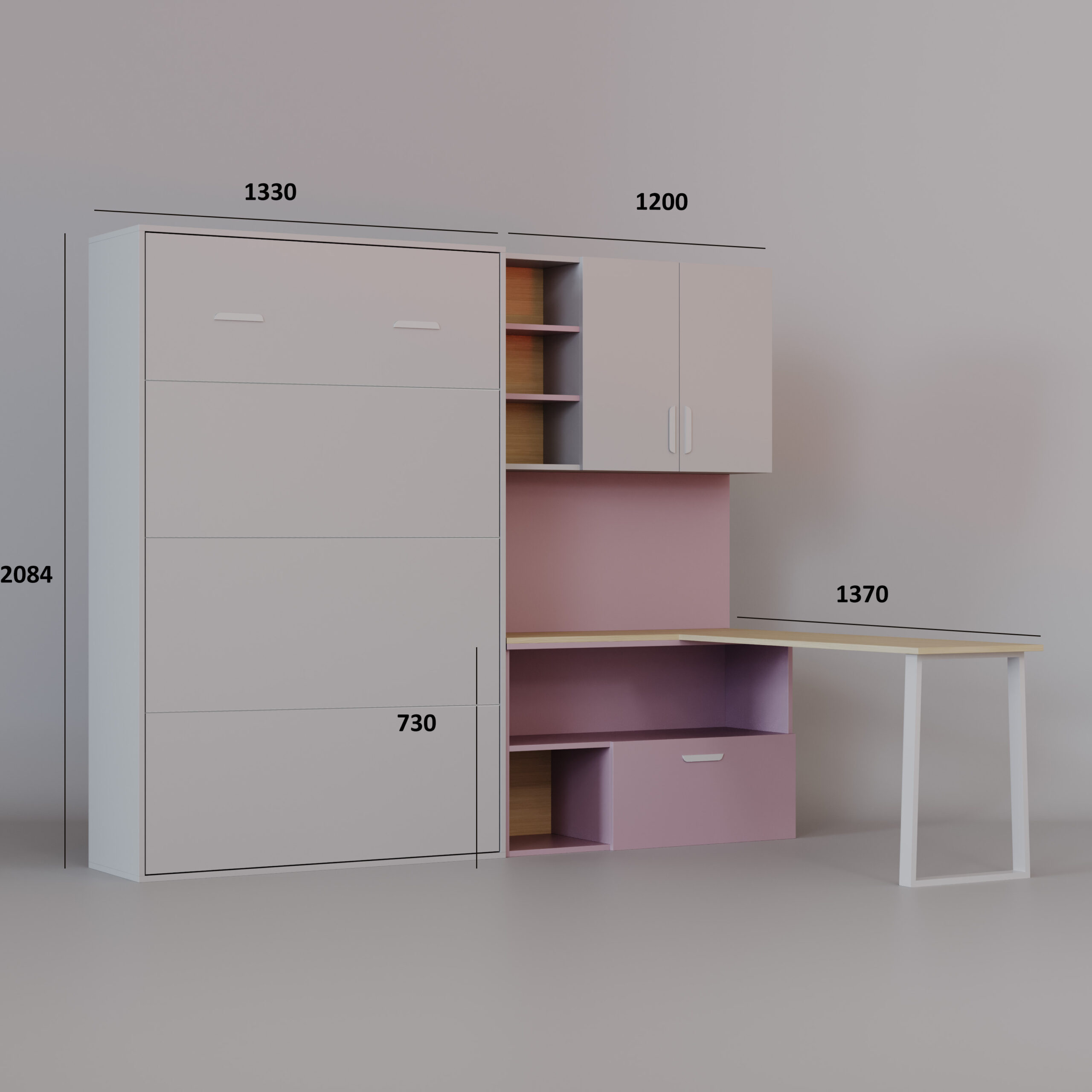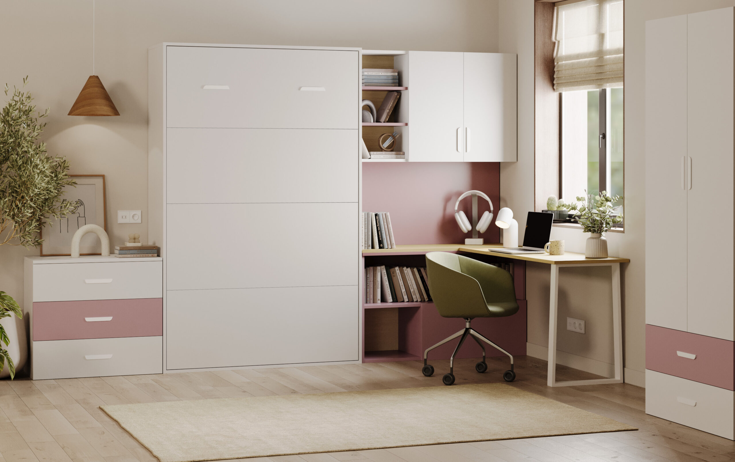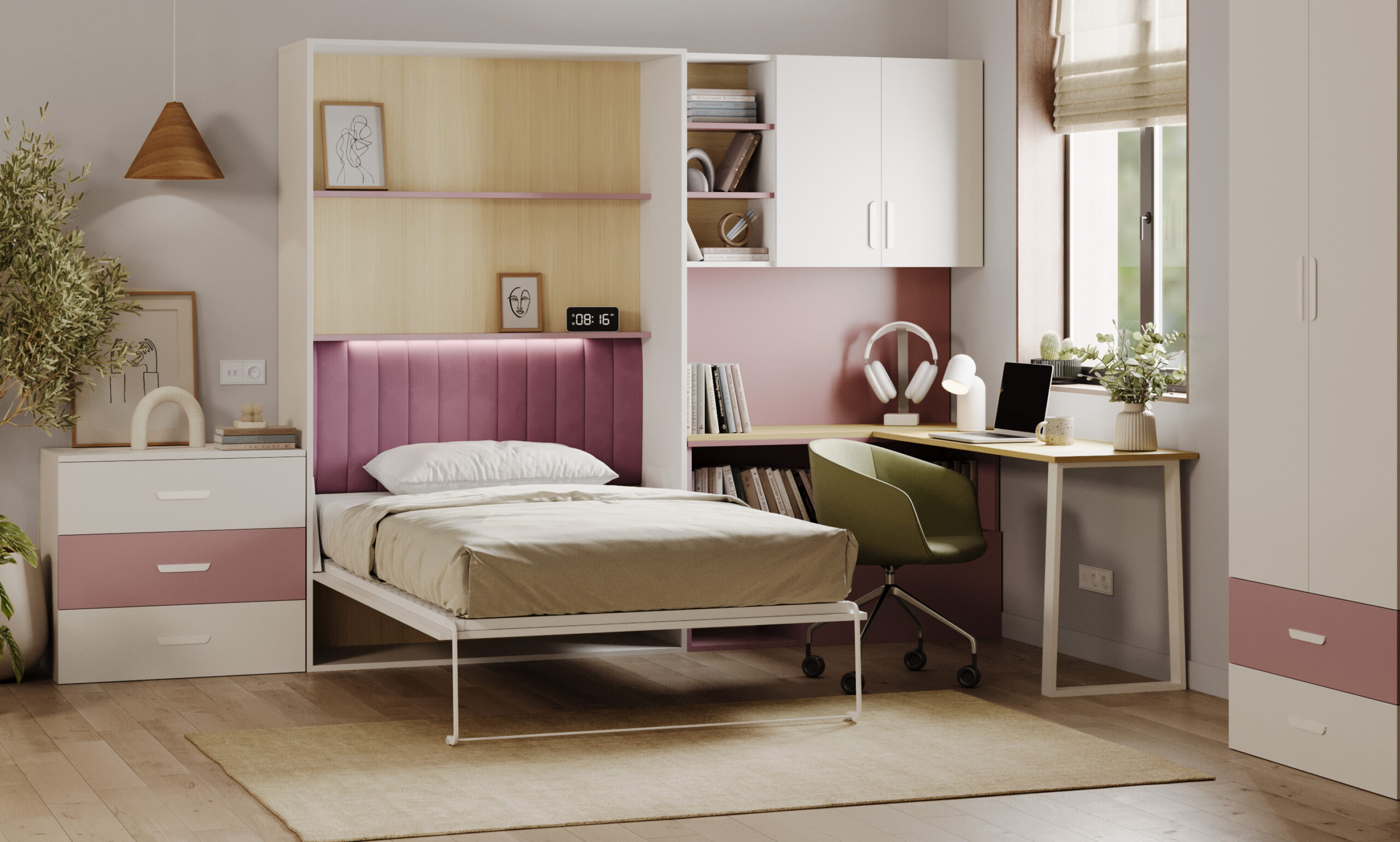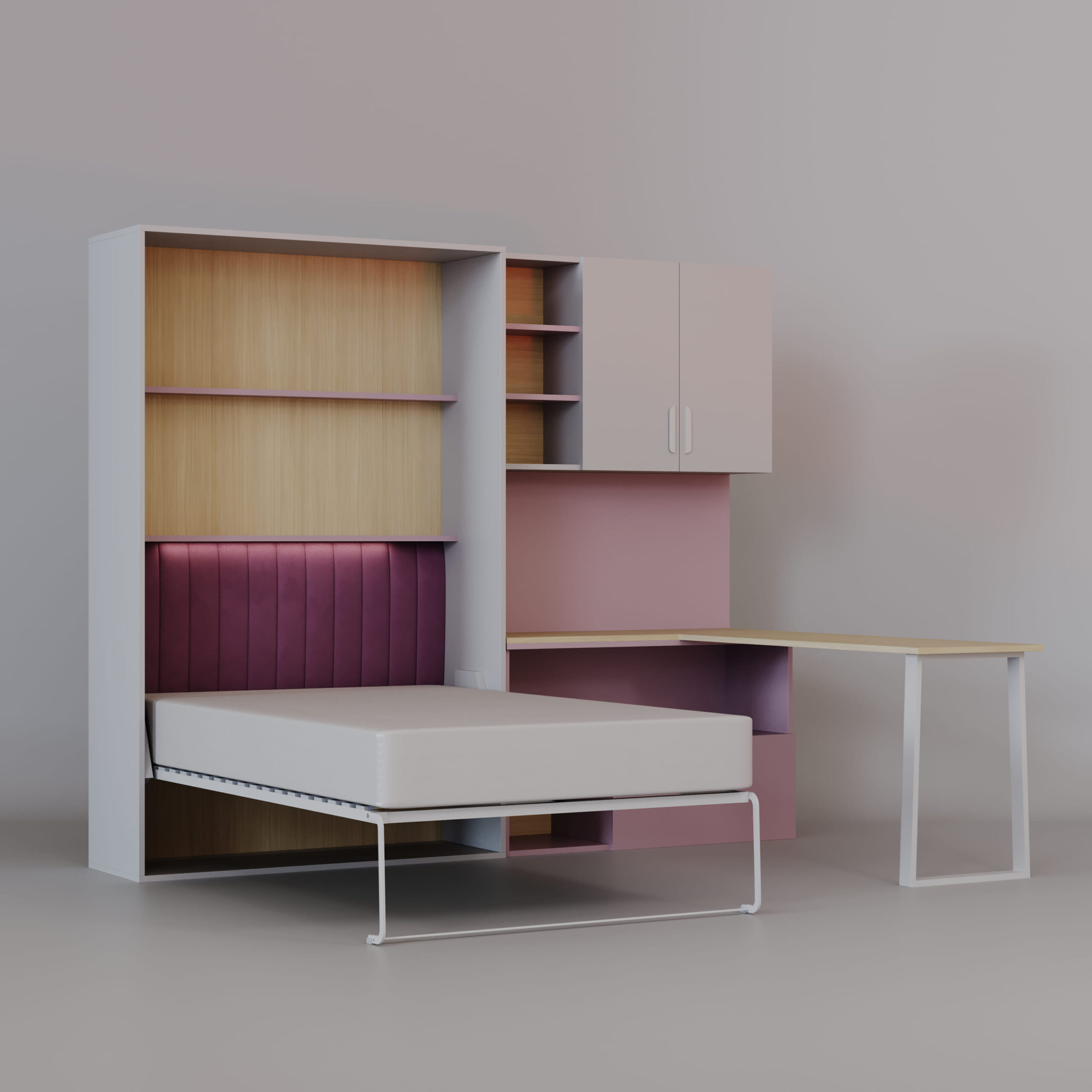 Komplet Flexi Bed Lumi – zložljiva postelja s pisalno mizo, kašmir in starinsko roza