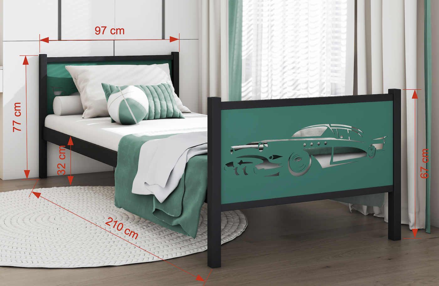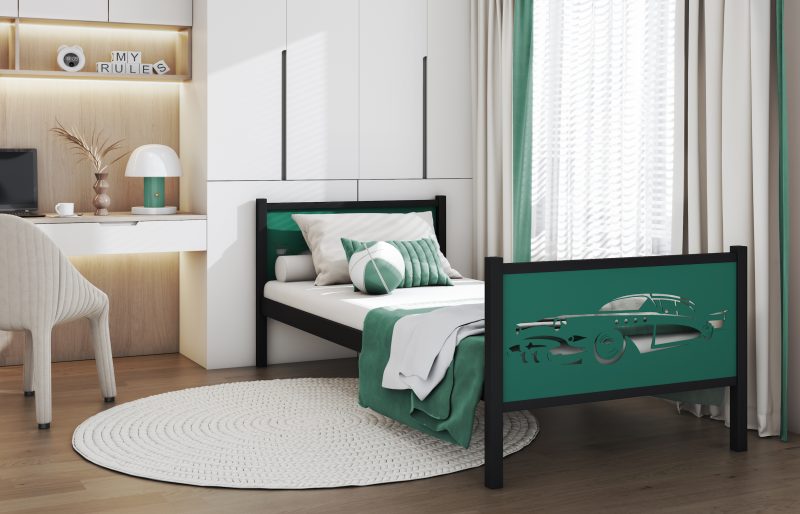 Elegantna in masivna postelja iz kovine je odlična izbira za mlade. Njeni minimalistični elementi zagotavljajo sodoben videz, dekorativne aplikacije v vzglavjih pa dodajo edinstven značaj. Zahvaljujoč visoki kakovosti izdelave z uporabo prašnega lakiranja je njena površina odporna na praske in enostavna za vzdrževanje.