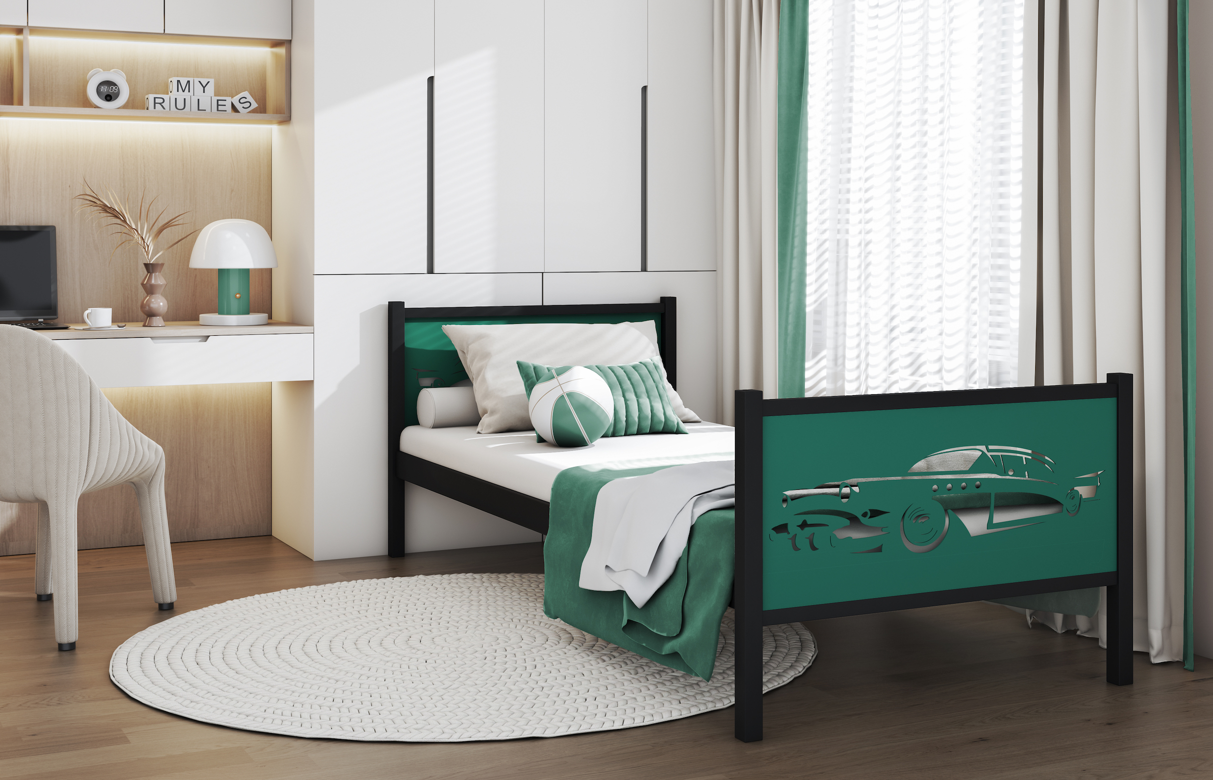 Ta postelja ne le poudarja individualni slog mladinske sobe, temveč zagotavlja tudi udoben počitek vsak dan. Idealna rešitev za ljudi, ki iščejo funkcionalno in nenavadno pohištvo.