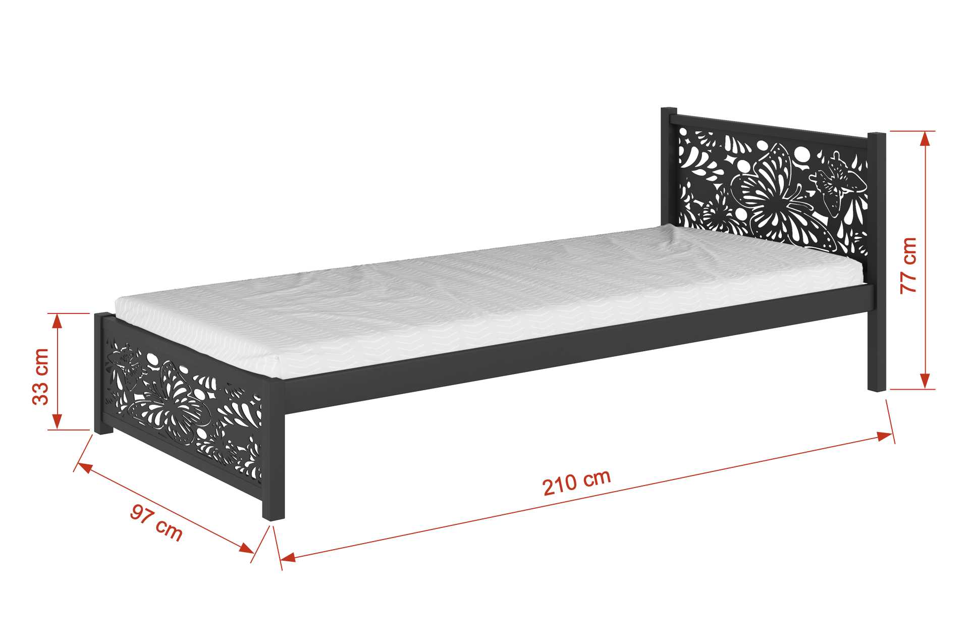 Elegantna in masivna postelja iz kovine je odlična izbira za mlade. Njeni minimalistični elementi zagotavljajo sodoben videz, dekorativne aplikacije v vzglavjih pa dodajo edinstven značaj. Zahvaljujoč visoki kakovosti izdelave z uporabo prašnega lakiranja je njena površina odporna na praske in enostavna za vzdrževanje.