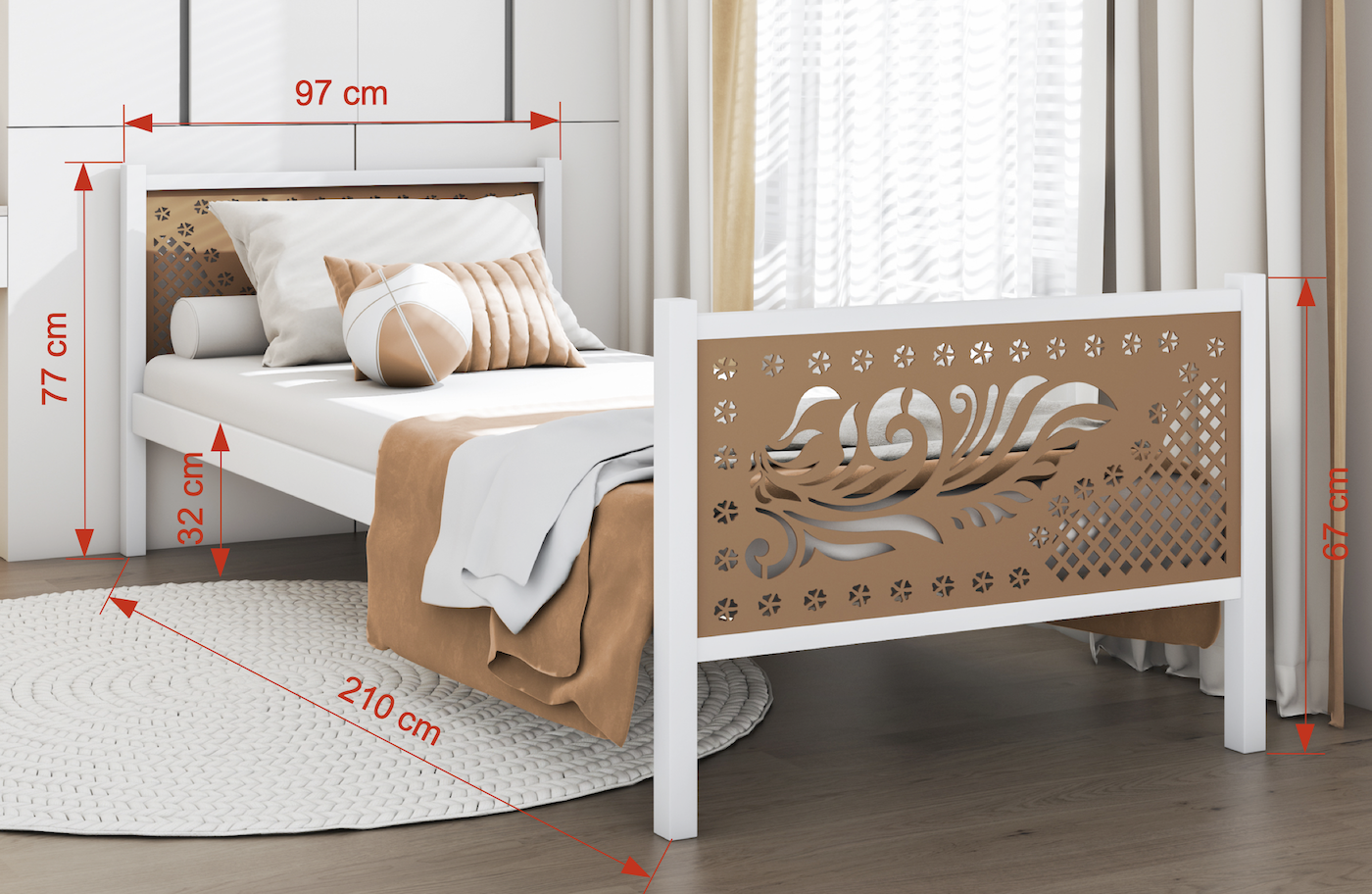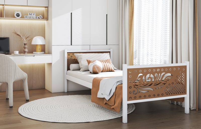 Elegantna in masivna postelja iz kovine je odlična izbira za mlade. Njeni minimalistični elementi zagotavljajo sodoben videz, dekorativne aplikacije v vzglavjih pa dodajo edinstven značaj. Zahvaljujoč visoki kakovosti izdelave z uporabo prašnega lakiranja je njena površina odporna na praske in enostavna za vzdrževanje.