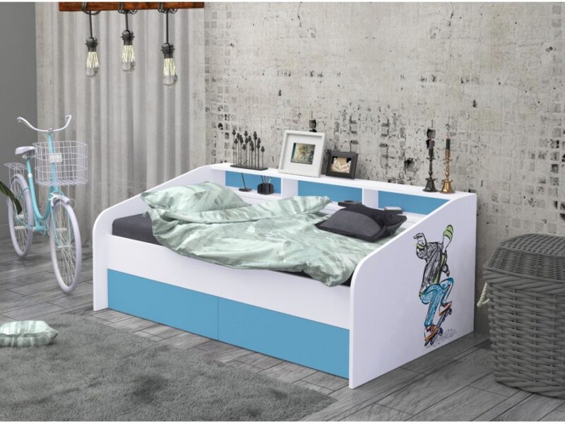 Ta mladinska postelja je izdelana iz visokokakovostne iverne plošče in vključuje dva prostorna predala, ki se izvlečeta.