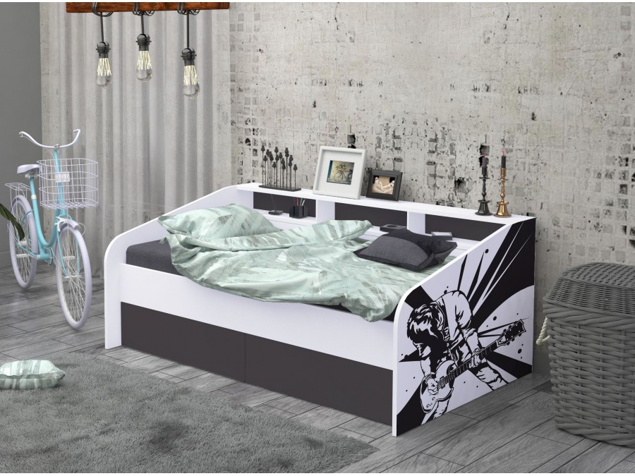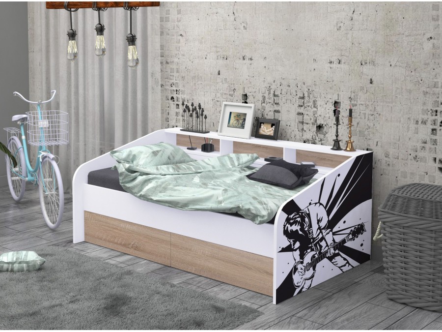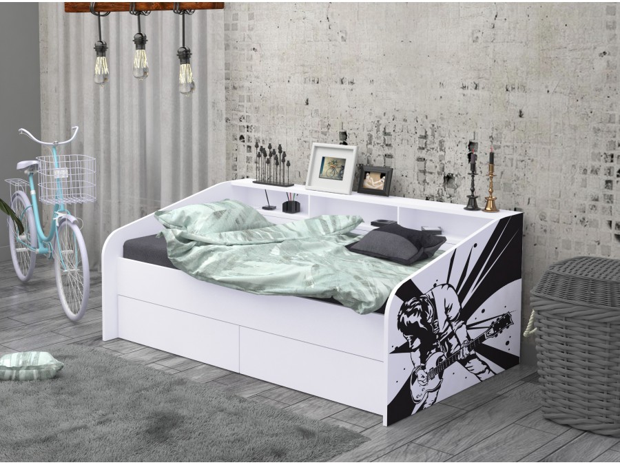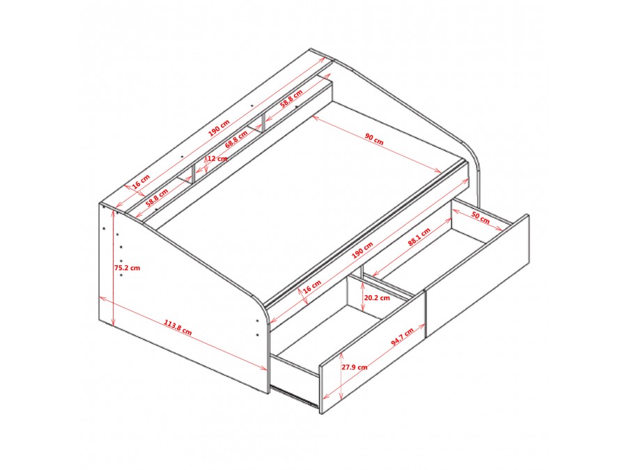 Ta mladinska postelja je izdelana iz visokokakovostne iverne plošče in vključuje dva prostorna predala, ki se izvlečeta.