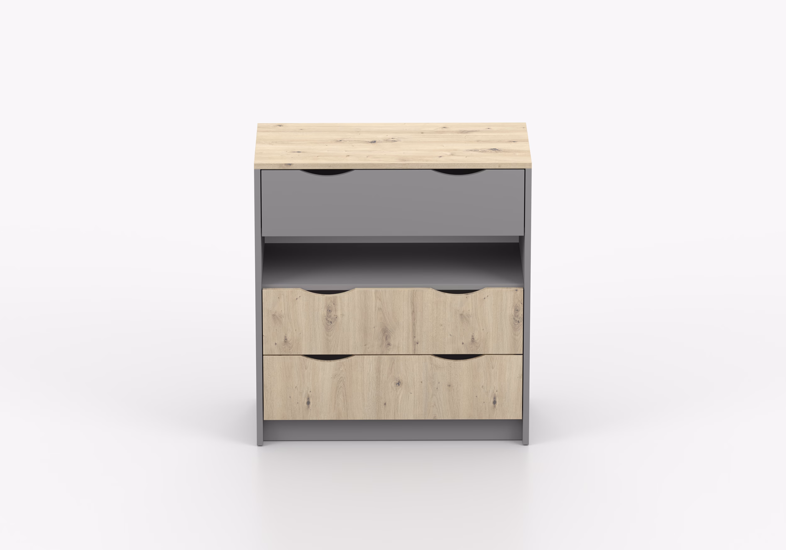 Predalnik ima tri prostorne predale, ki so idealni za shranjevanje različnih predmetov.