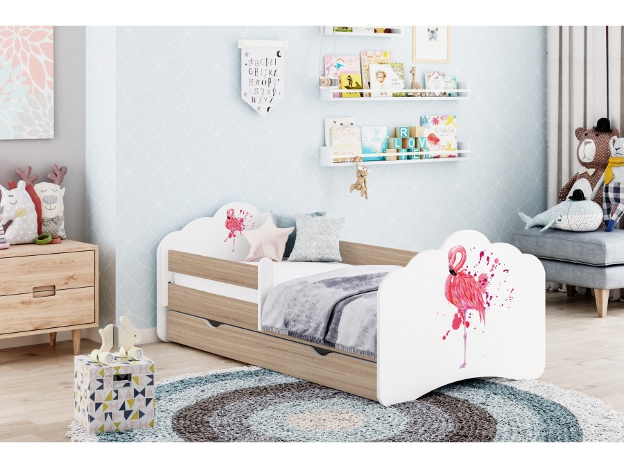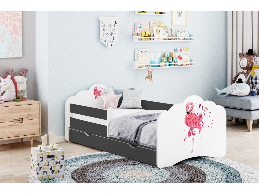 - Postelja je opremljena z odstranljivo varnostno ograjo, obdelano s posebno mehko gumo, ki ščiti vašega otroka pred udarci.