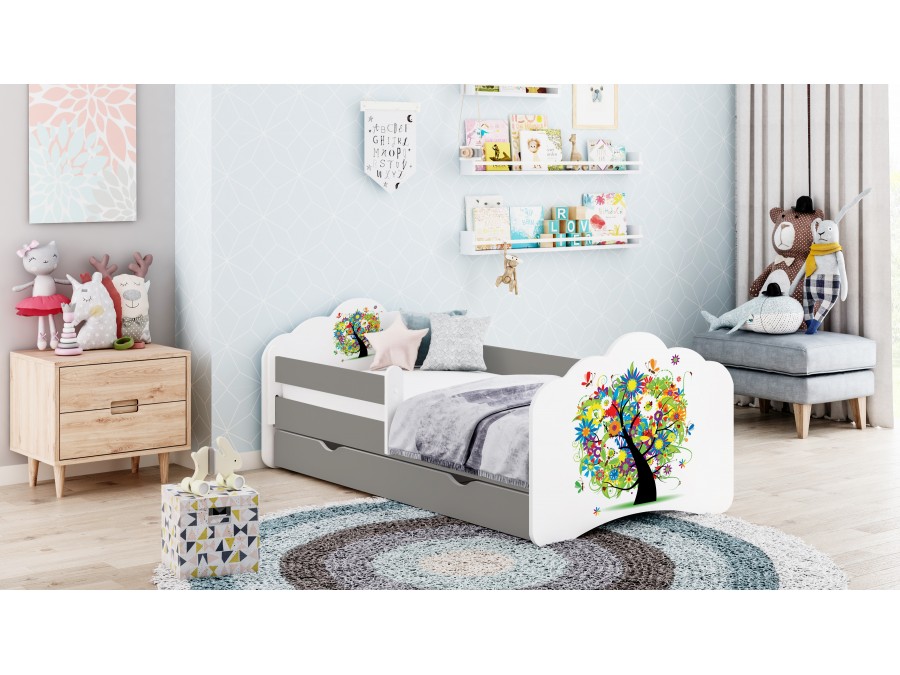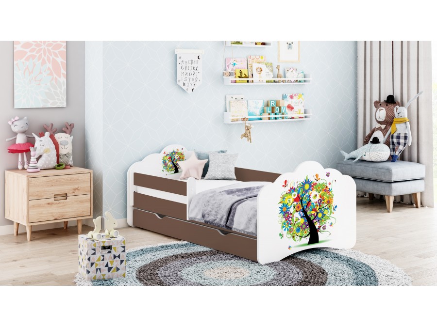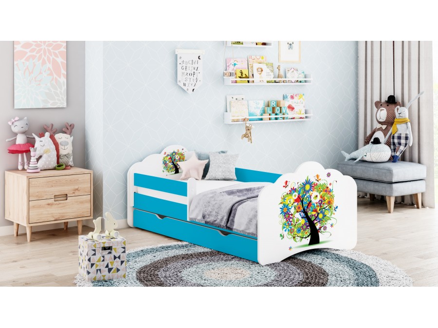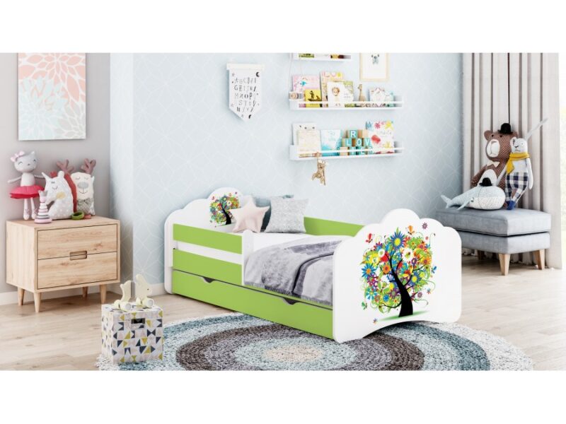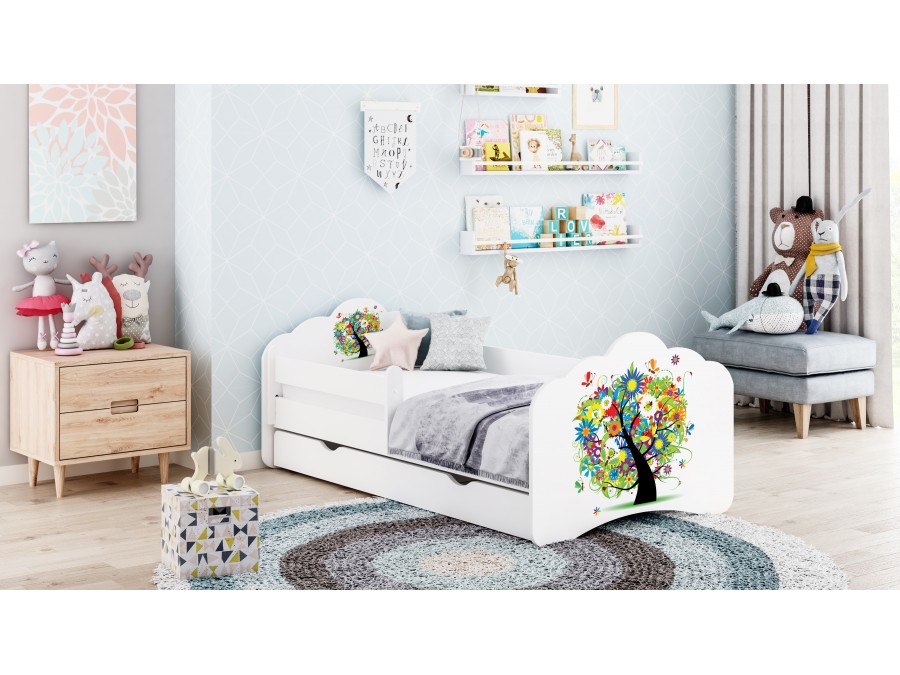 - Postelja je opremljena z odstranljivo varnostno ograjo, obdelano s posebno mehko gumo, ki ščiti vašega otroka pred udarci.
