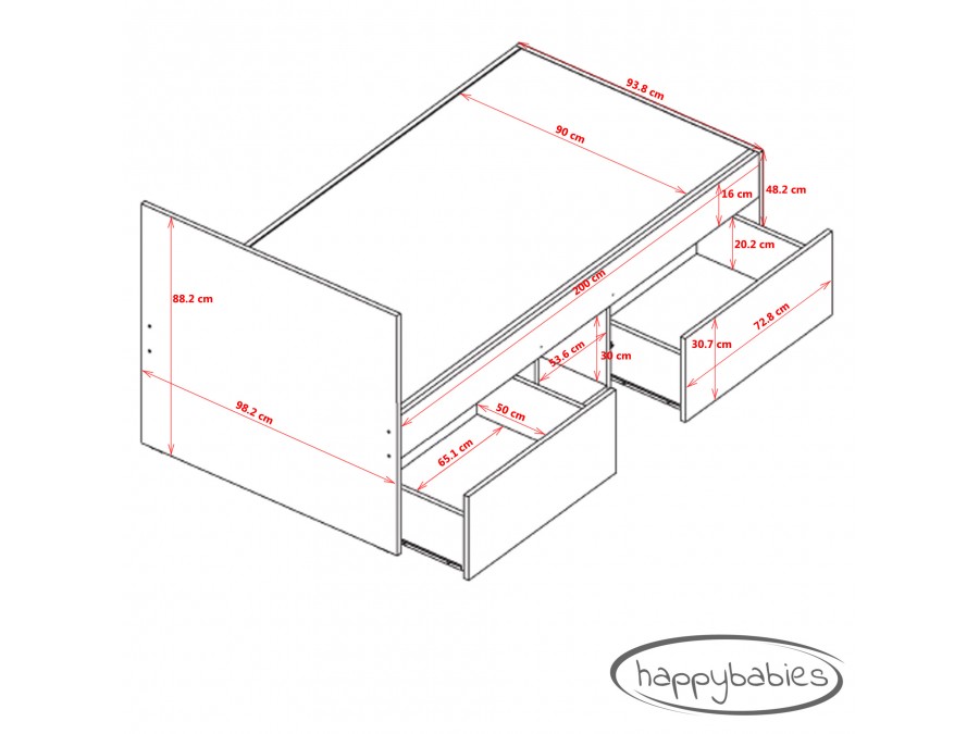 - Ta otroška postelja je izdelana iz visokokakovostne iverne plošče.