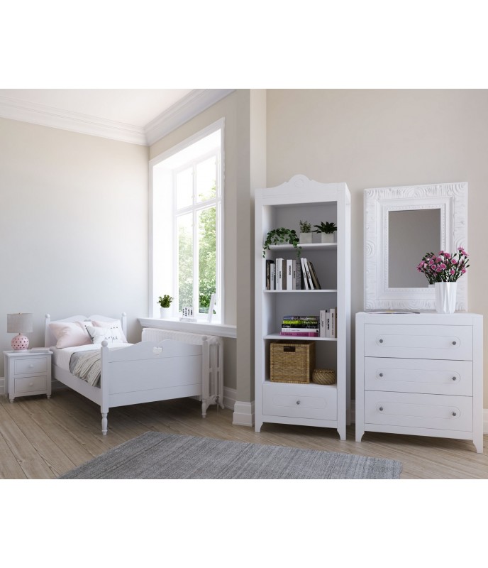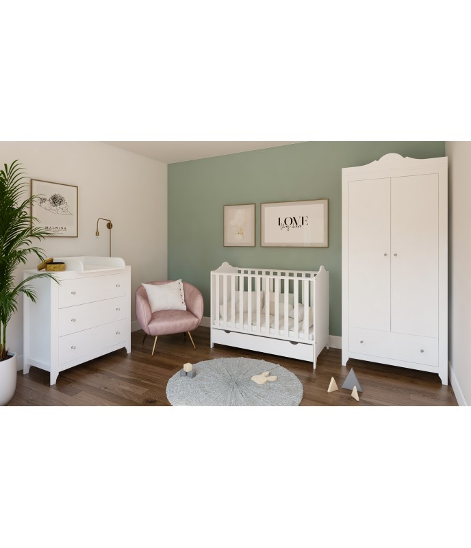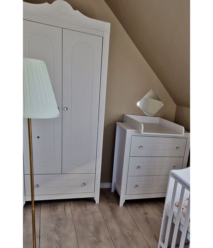 Kolekcija GLAMOUR je klasična in elegantna linija otroškega pohištva s svežim in nežnim videzom. Kolekcija se ponaša s svetlim slogom, ki ga poudarjajo čudoviti kristalni ročaji. Zahvaljujoč svoji slogovni vsestranskosti bo odlično izgledala tako v prijetni otroški sobi kot v sodobni najstniški sobi.