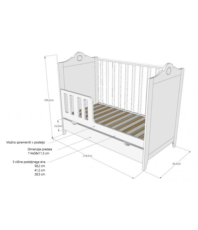 • Dodaten prostoren spodnji predal za dodatke, posteljnino ali igrače.